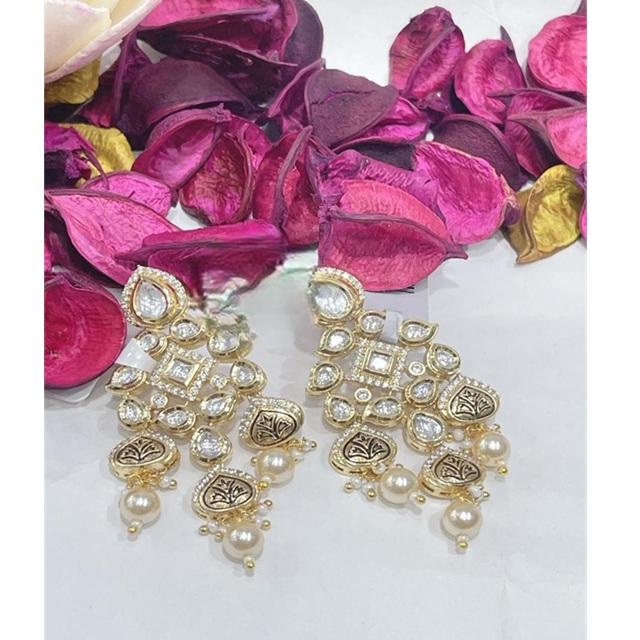 Charming Best Quality Gold Finish Polki Kundan Long Chandbali Earring For Women & Girls Evening Look Party Wear Collection