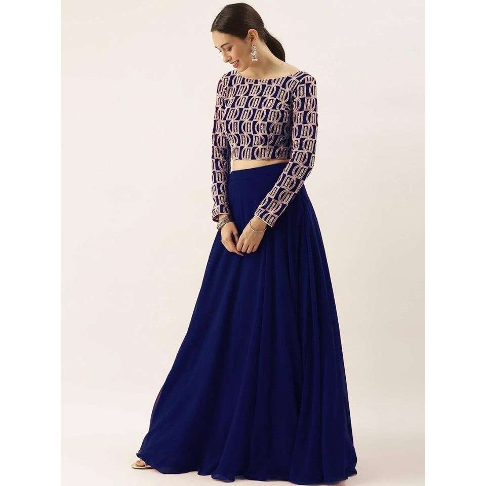 Charming Blue Thread Work Georgette Sangeet Wear Lehenga Choli