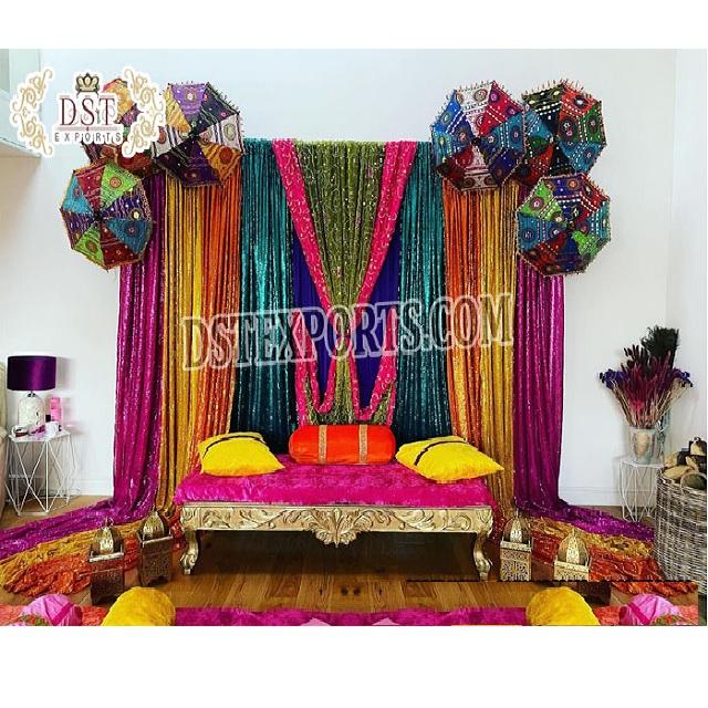 Charming Draping Decoration for Sangeet Setup Gorgeous Backdrops Decoration for Sangeet Stage Colorful Sangeet Backdrop Curtain