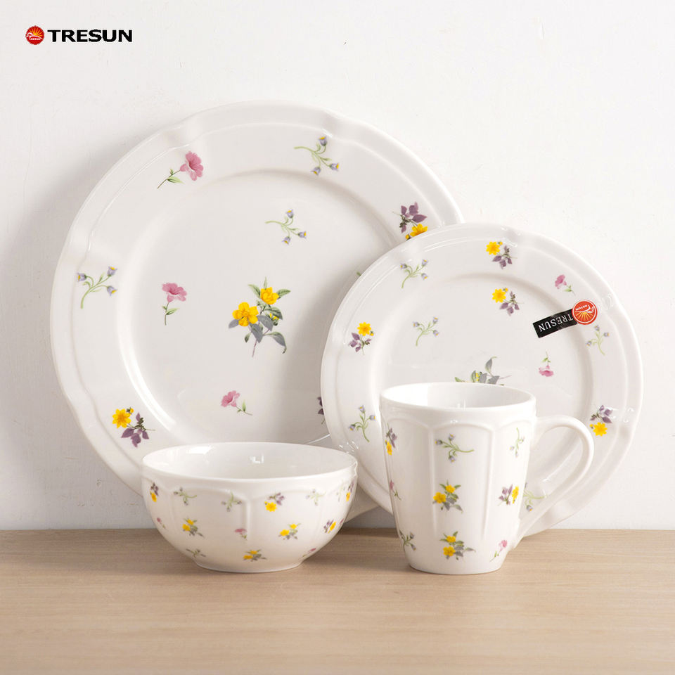 16 pieces Europe Style Floral Pattern Luxury Ceramic Porcelain Dishwasher Safe Dinner Plates Dinnerware Set for wedding