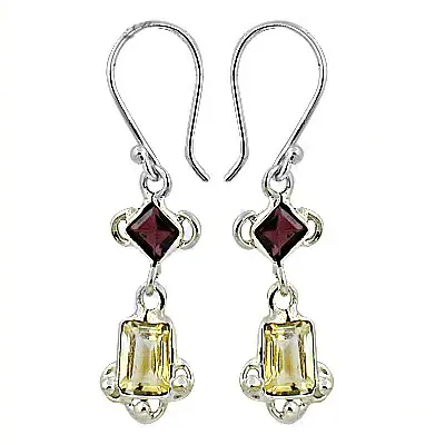 "Charming Gold-Plated 925 Silver Garnet & Citrine Drop Earrings for Women"