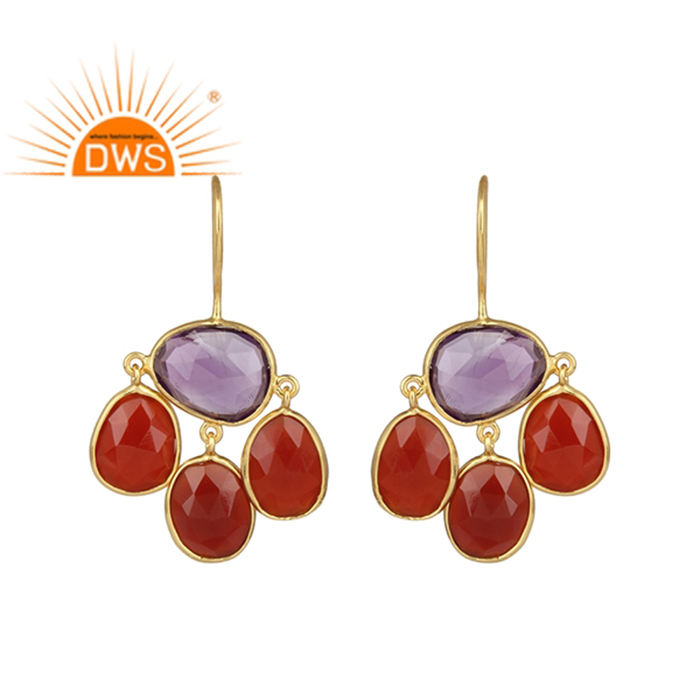 Charming Gold Plated 925 Silver Hook Earrings Red Carnelian Amethyst Gemstone Earrings Jewelry Supplier