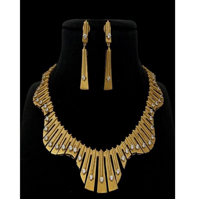 Charming High Quality Moissanite Studded Brass Gold Plated Classic Statement Necklace Earring Set Women's Engagement Wedding