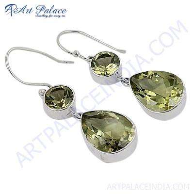 Charming Lemon Quartz Silver Fashion Hoop Earrings Elegant Silver Fashion Accessory