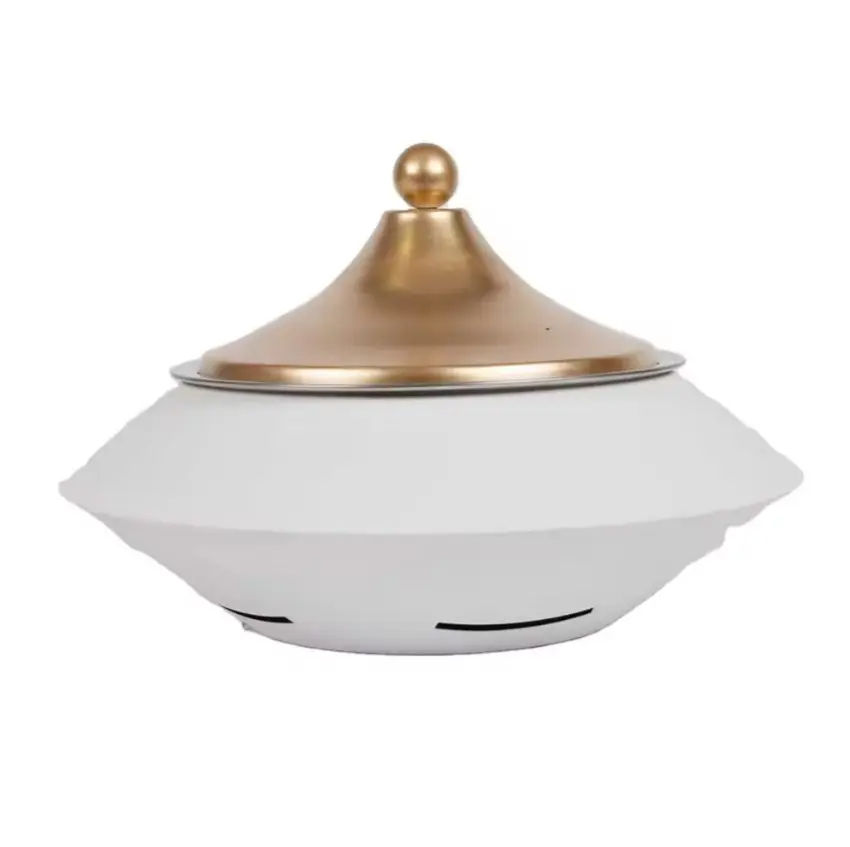 Charming Metal Casserole Hot Pot With Blue Outer Pot Gold-Plated Lid and Elegant Knob Handle Perfect for Sophisticated Food