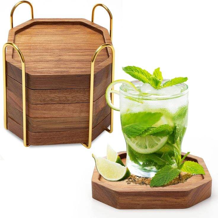 Charming New Look Wooden Coasters Featuring Antique-inspired Design Elements Perfect for Rustic or Vintage-themed Decor