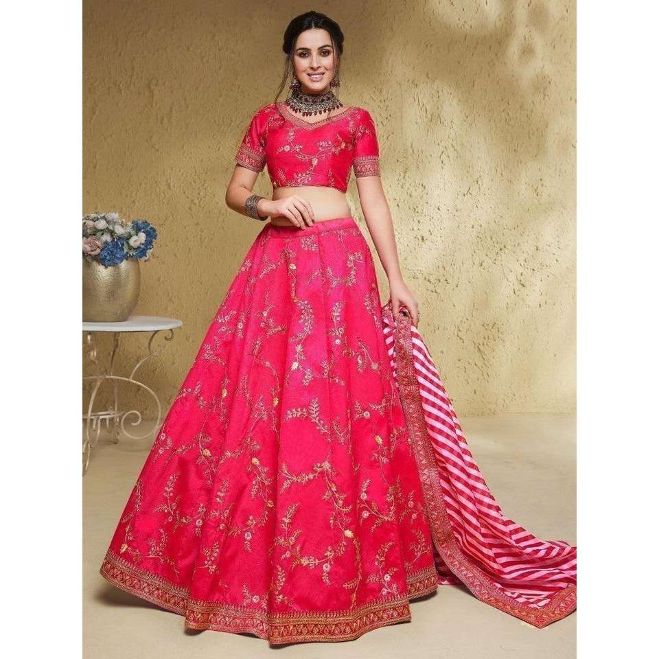 Charming Pink Embroidered Silk Wedding Wear Lehenga Choli