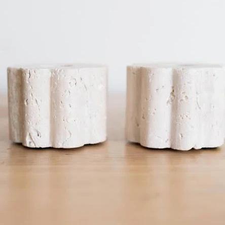 Charming Travertine Stone Floral Candle Holders Handcrafted Design Adds Natural Texture Stable Base and Elegant Warmth to Decor