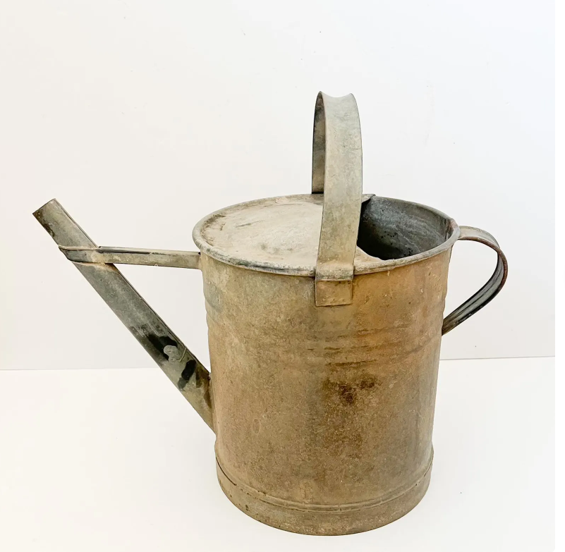 Charming Vintage Metal Watering Can Planter for Flower and Herb Gardens Weathered Look for indoor & outdoor use