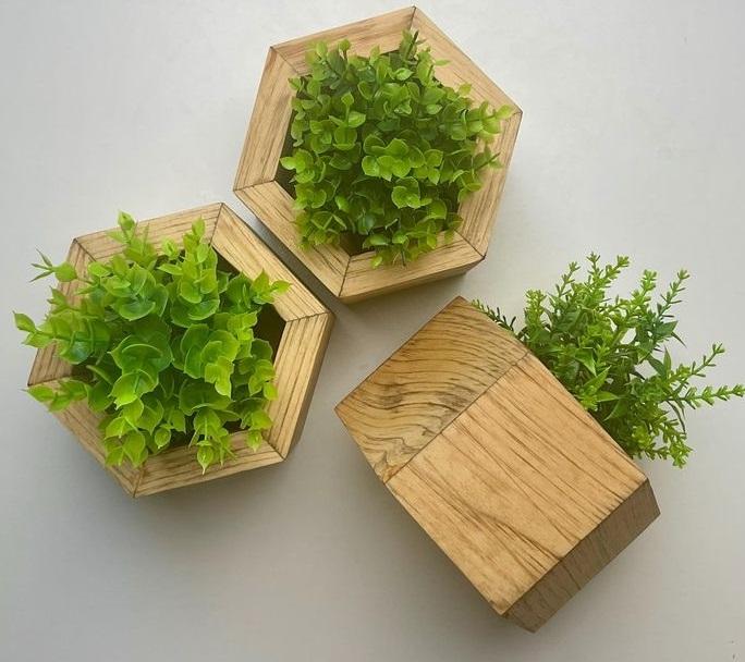 Charming Wooden Flower Pot Planter for Indoor and Outdoor Garden Use with Handcrafted Rustic Natural Wooden Finish