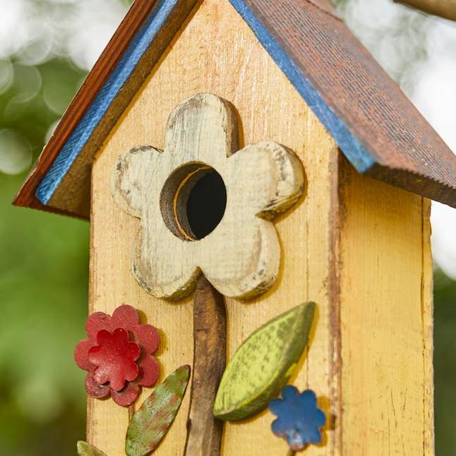 Charming Wooden Hanging Birdhouse with Colorful Flower Design Ideal for Garden Balcony Tree Decor Rustic Outdoor Accent