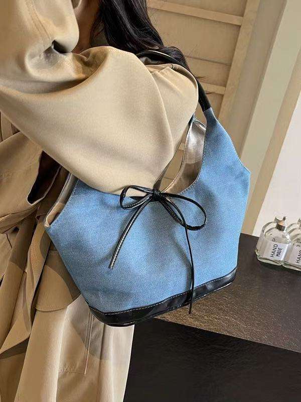 Charming girls handbag with sweet bowknot embellishment and unique color block style perfect for young women suitable