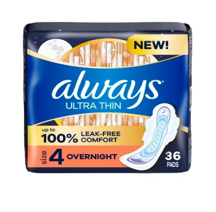 Cheap Always Maxi Overnight Pads with Wings Size 4 Soft Comfortable Extra Heavy Absorbency Leak Guard Bulk Sale