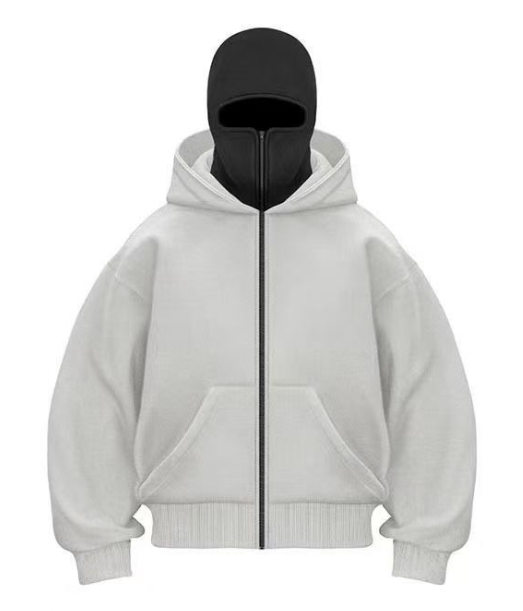Cheap Bulk Wholesale Top Quality Blank Men Streetwear Full Face Mask Balaclava Hoodies Drop Shoulder Double Layer Zip Up Hoodie