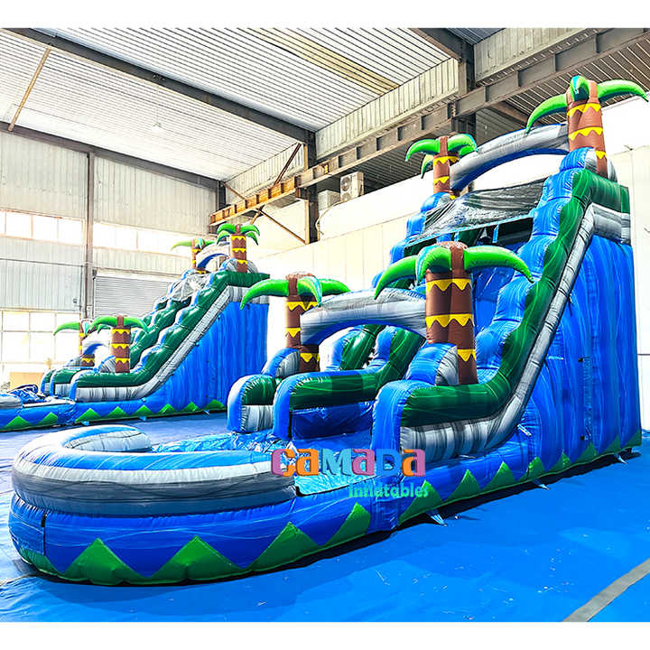 Cheap Commercial Blue Crush Inflatable Palm Tree Wet and Dry 18 ft Tall Screaner Adult Waterslide Water Surf Slide