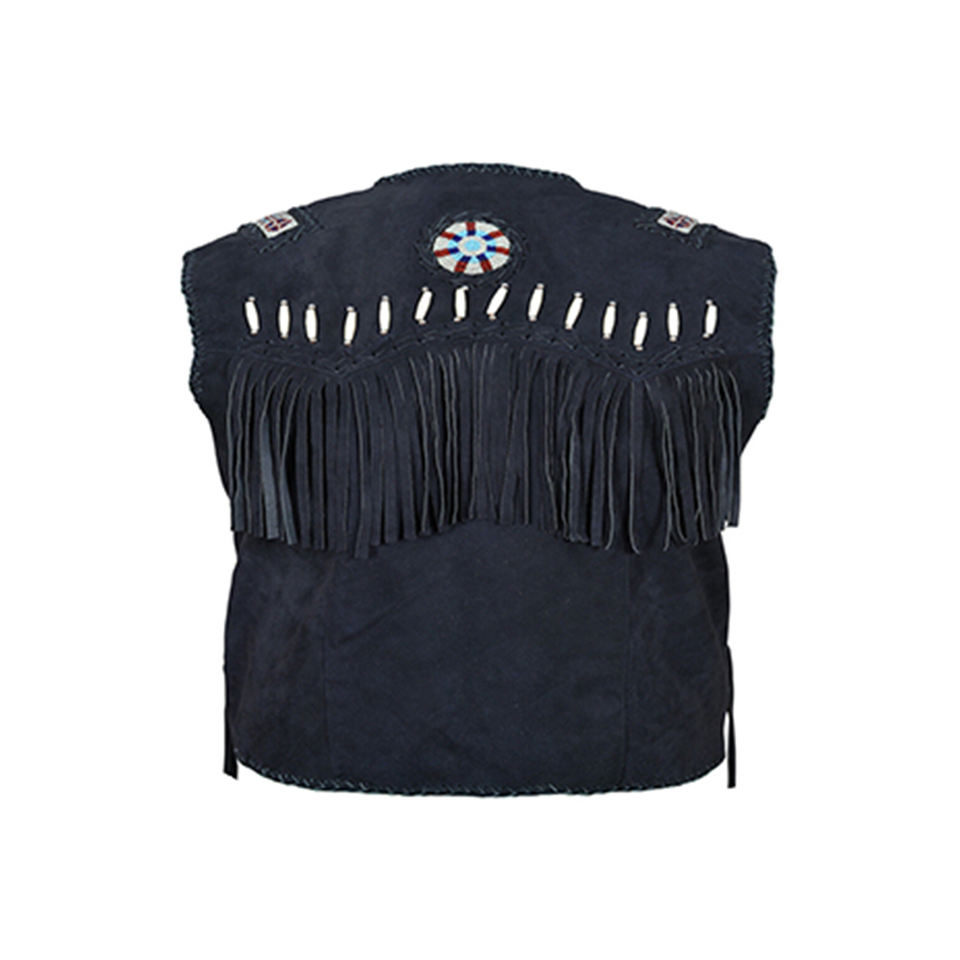 Cheap Custom Fringed & Beaded Cowboy Men Western Brown Suede Leather Vest for Men Western Leather Vest