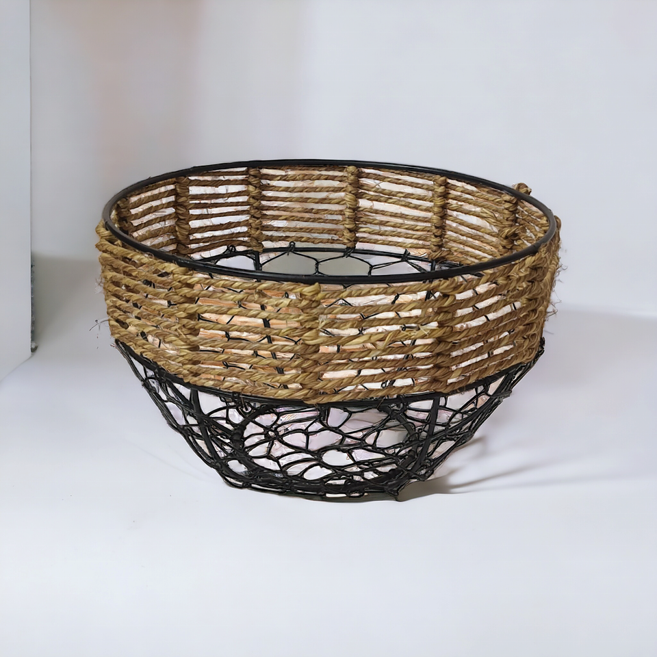 Cheap Custom Size Round Fruit Basket Made of Natural Jute Rope Metal Household Display Storage Hand-woven by Indian Artisansns