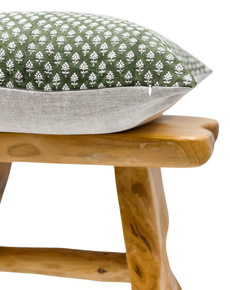 Cheap Designer Handmade Block Print Olive Green on Linen Pillow Cover Green Farmhouse Floral Cushion Covers