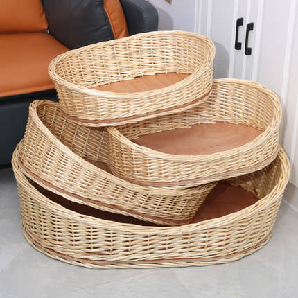 Cheap Dog House Wicker Basket Big Pet Basket Round Wicker Pet Bed