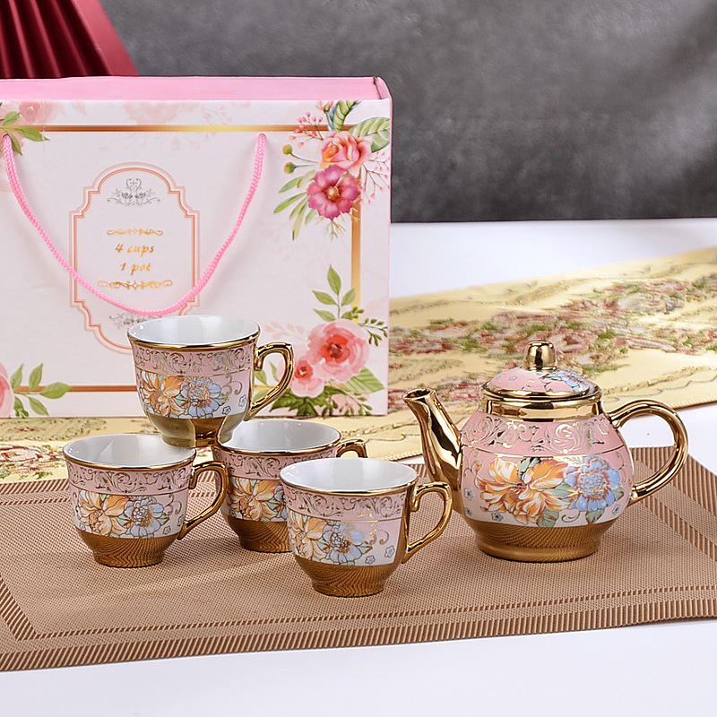 Cheap Gold Pattern Ceramic Cup and Pot Set Ceramic Coffee Cup Set With Gift Box Ceramic Tea Cup Set