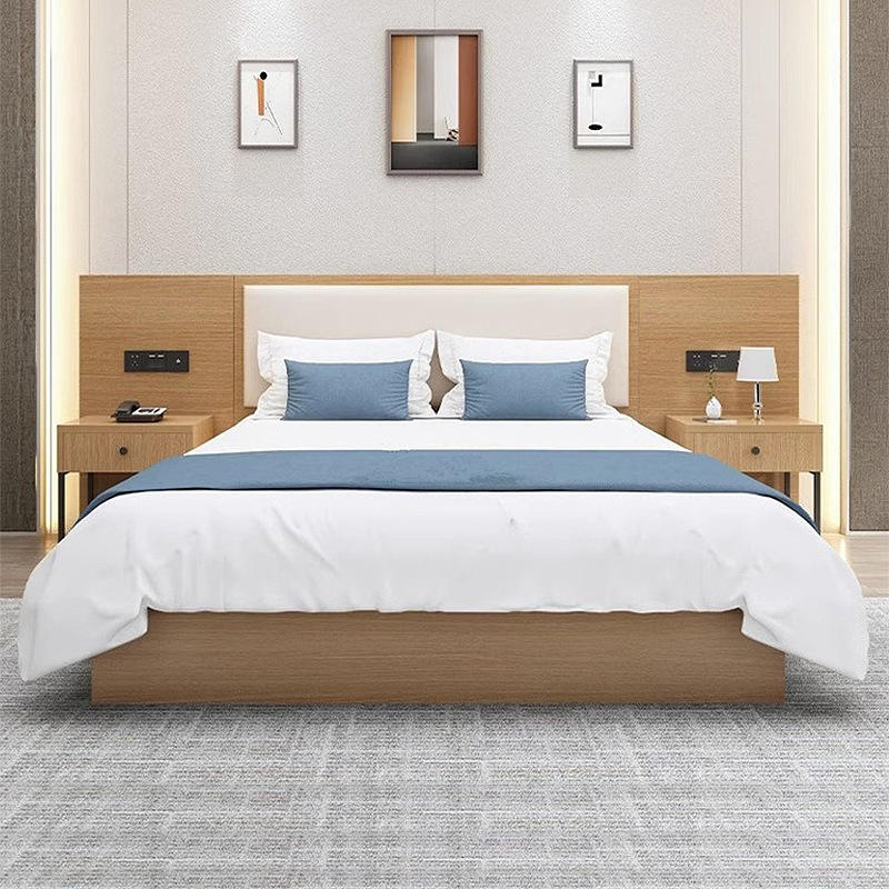 Cheap Hospitality Bedroom Furniture Set Custom King Single Double Queen Size Wooden Frame Hotel Bed With Headboard & Nightstands