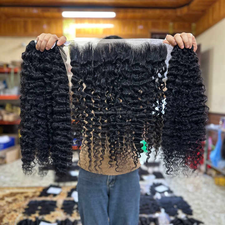 Cheap Human Hair Extensions Vietnamese Raw Hair Bundle Smooth Burmese Curly Hair With Lace Frontal Set Lace Front Wigs Glueless