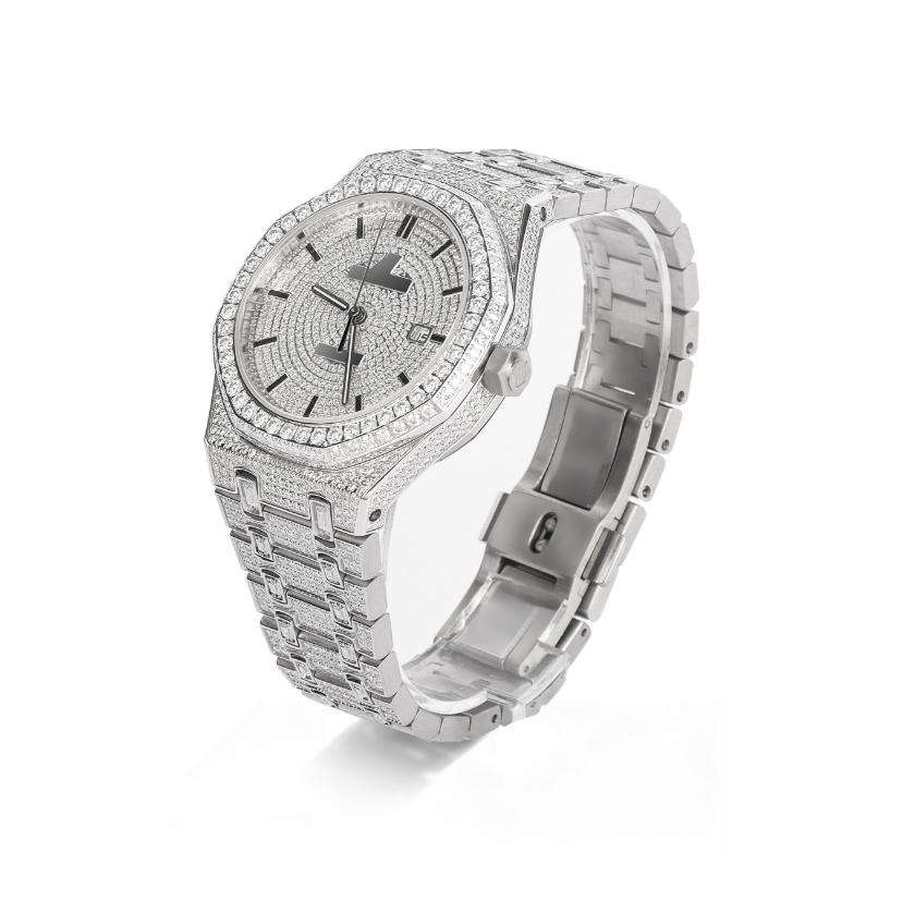 Cheap Iced Out Fully Diamond 5 Colors Watches Silver Gold Metal Case Dial Quartz Men's Wrist Watch for Men Women from India