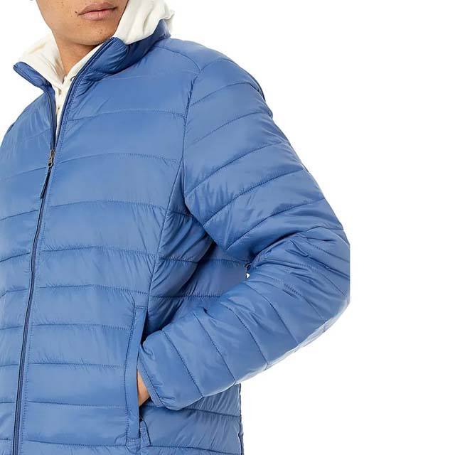 Cheap Light Warm Custom Logo Nylon Stand Collar Winter Bubble Puff Filled Polyester Front Jacket for Men