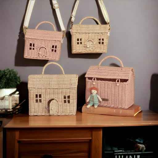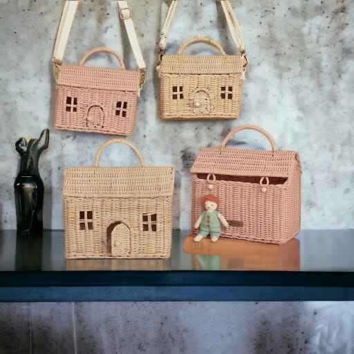 Cheap Outdoor Hand Woven Mini Shoulder Wicker Bag Cute Children's Unique Fashion Rattan Shoulder Crossbody Bag Baby Products