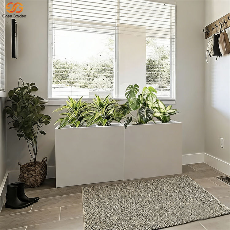 Cheap Outdoor Steel Sheet Planter Pots Rectangular Modern Black/White Painted Finish Flower Garden Home Nursery Interior