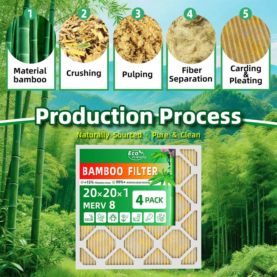 Cheap Price AC Furnace HVAC Pleated Filter Bamboo Fiber Frame 20x20*4 MERV8 Eco-Friendly High Dust Capacity Air Filter