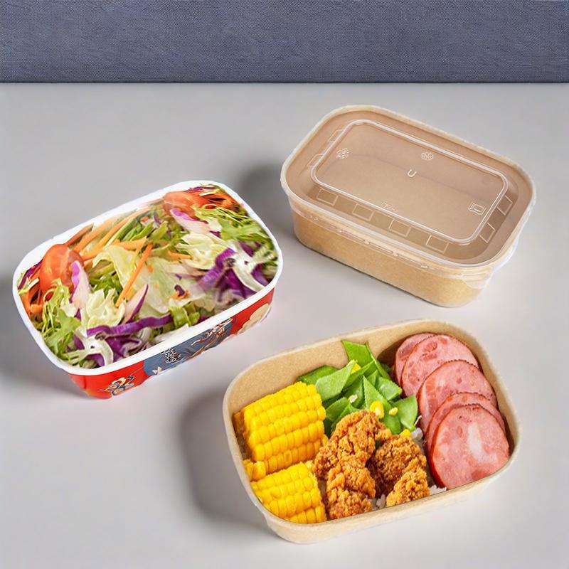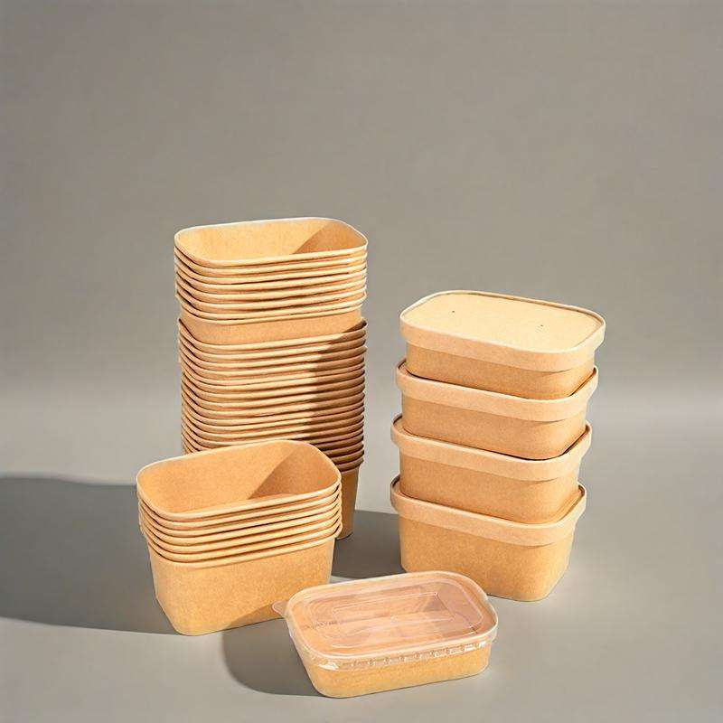 Cheap Price Brown Kraft Paper Lunch Box Rectangle Food Packaging Boxes Disposable Craft Paper Salad Bowl Containers with Lid