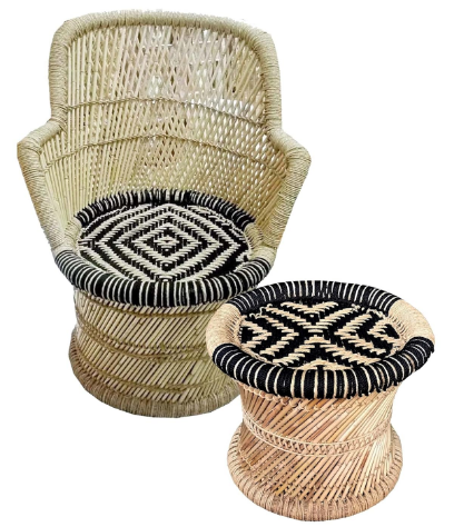 Cheap Price Garden Balcony Bamboo Rattan Furniture Outdoor Chair and Ottoman Set for Farmhouse Resorts Lounge