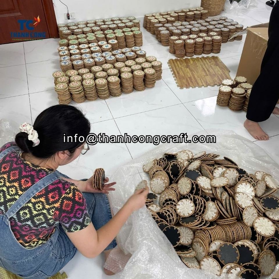 Product name:Mother of Pearl Coaster with Rattan Accents