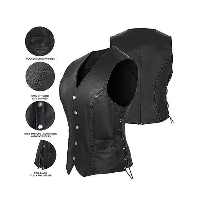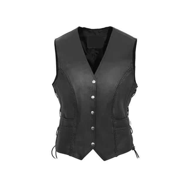 Cheap Price Hot Selling Women Biker Leather Vest Oem Service Factory Made Women Biker Leather Vest