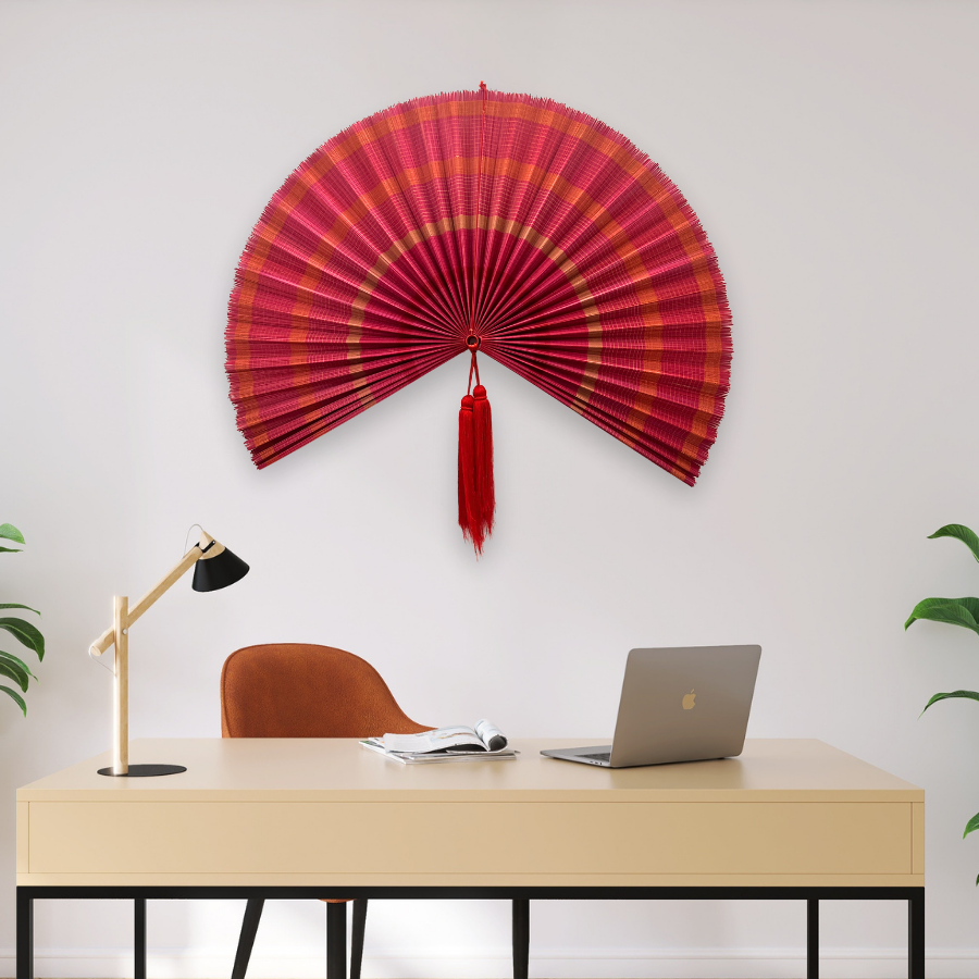 Cheap Price Luxury Red Bamboo Fan Wholesale Boho Wall Fan Decor for Living Room Bedroom Handwoven from Vietnam