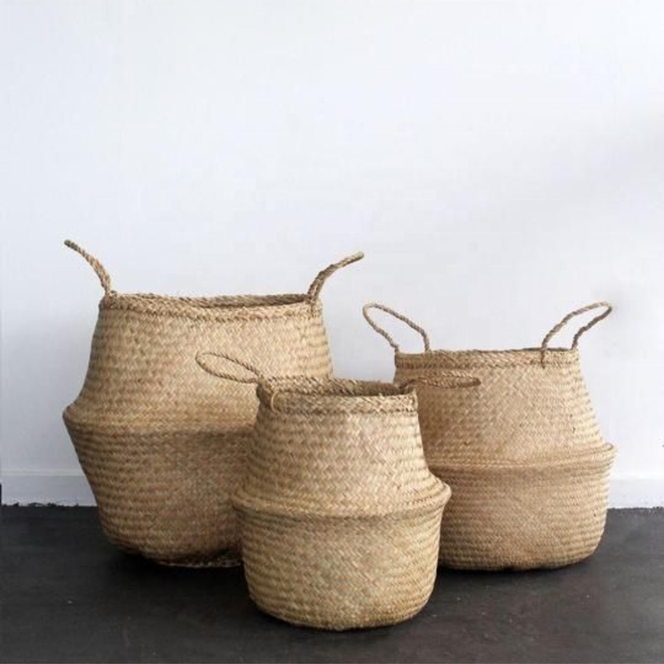 Cheap Price Natural Seagrass Belly Basket Gift Basket with Handles for Year End Party Storage Basket Decoration Made in Vietnam