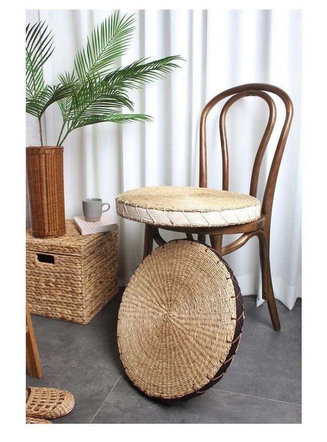 Cheap Price Natural Seagrass Cushion Woven Water Hyacinth Ottoman for Home Gardent Decor Vietnamese Supplier