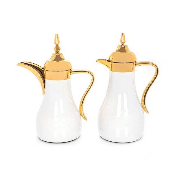 Cheap Price New Design Noble Luxury Dallah Arabic Coffee Pot White and Golden Stainless Steel Tea and Coffee Set 0.5L/1.0L