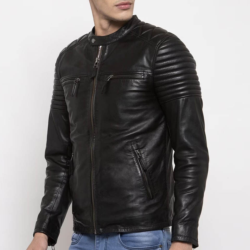 Cheap Price New Stylish Lightweight Leather Jacket for Men New Zipper Stand Windproof Leather Coat Mens