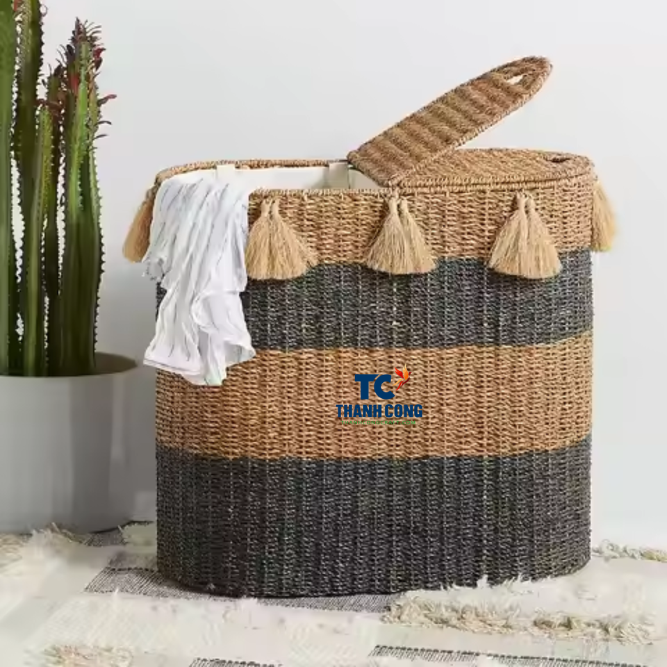 Cheap Price Seagrass Hamper Basket Natural Seagrass Laundry Basket With Lid for Home Decoration and Storage Clothes