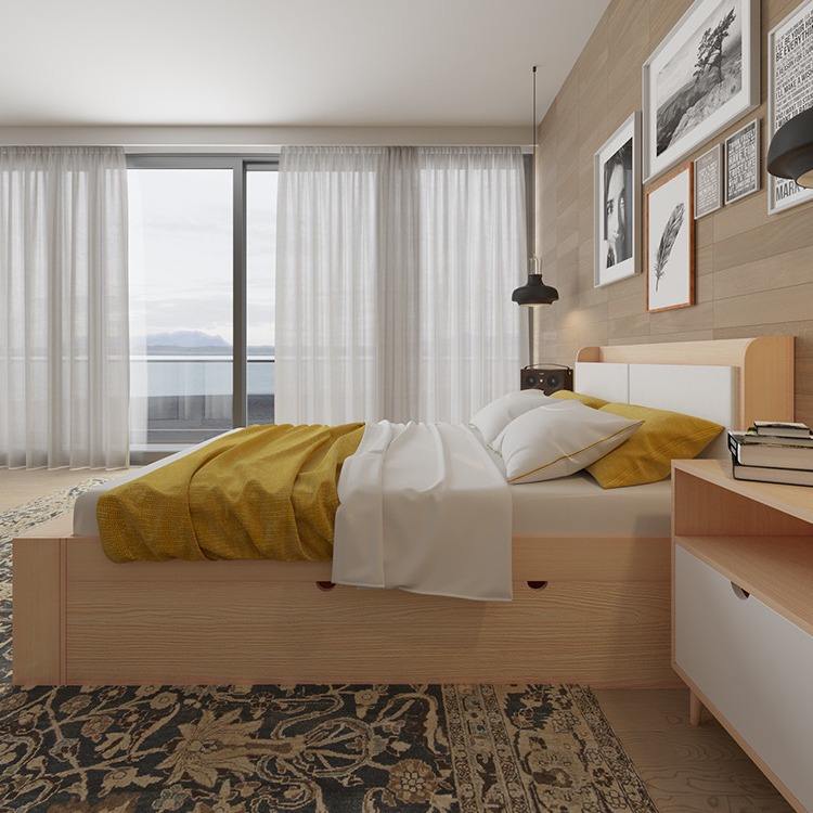 Cheap Price Simple Hotel Furniture Set Modern Single Solid Wood Bed Frame and Nightstand for Hotel and Apartment Bed Room