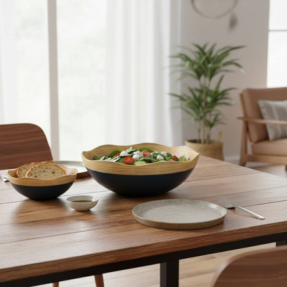 Cheap Price Eco-Friendly Spun Bamboo Salad & Serving Bowls for Kitchenware Customized Vietnam Wholesale