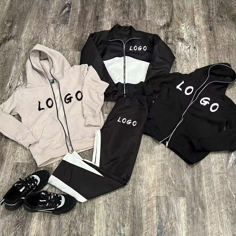 Cheap Price Wholesale Drawstring Suits Training Jogging Sport Wear Men 2 Piece Windbreaker Jacket and Trouser Set
