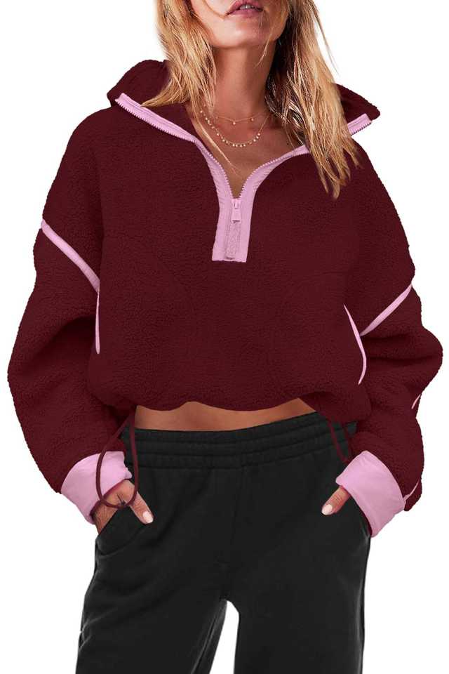 Cheap Price Wholesale Women's Winter Half Zip Sherpa Fleece Pullover Soft Oversized Sweatshirt with Pockets Front Logo