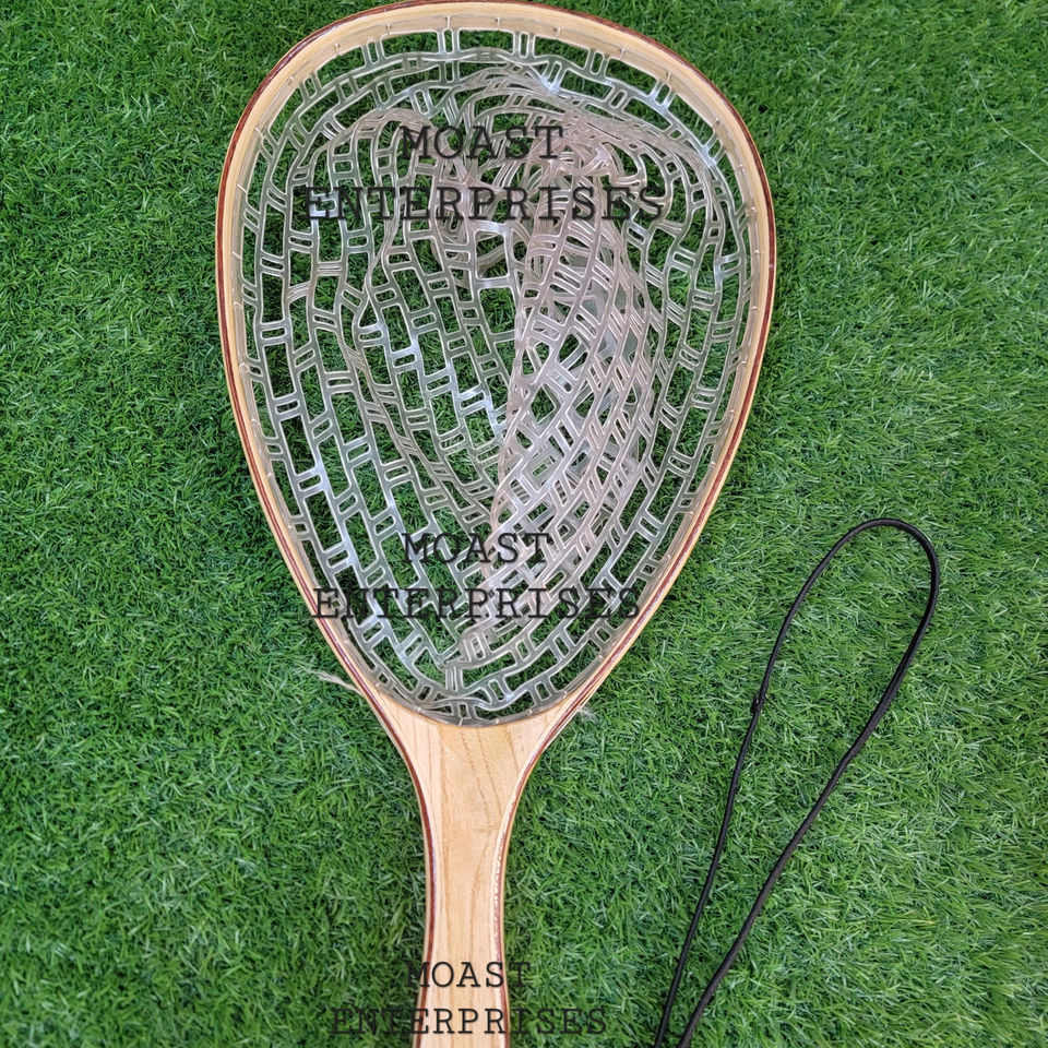 Cheap Price Wooden Fly Fishing Trout Landing Net With Naylon and Mesh Net and Long Elastic Hanging Hook