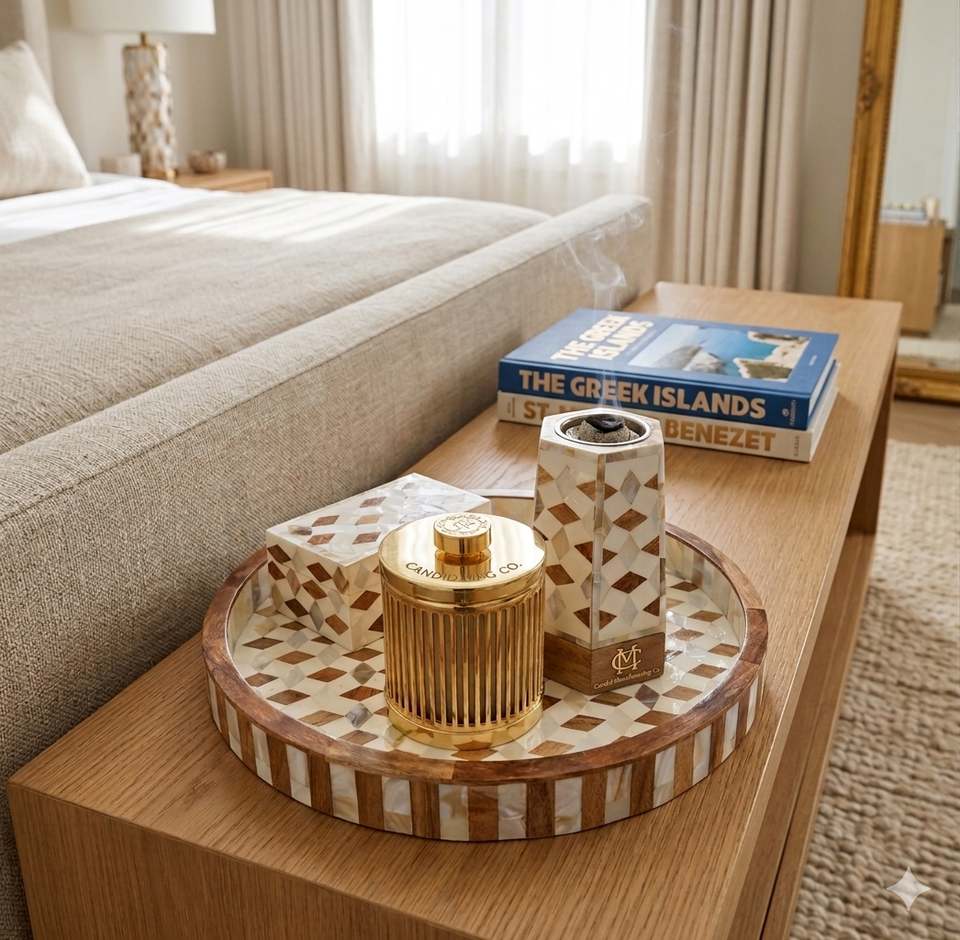 Cheap Price Mother Pearl Food Serving Tray Shell Bone Inlay Mubkhar Box Tray Set Bakhoor Burner Madkha Incense Diffuser