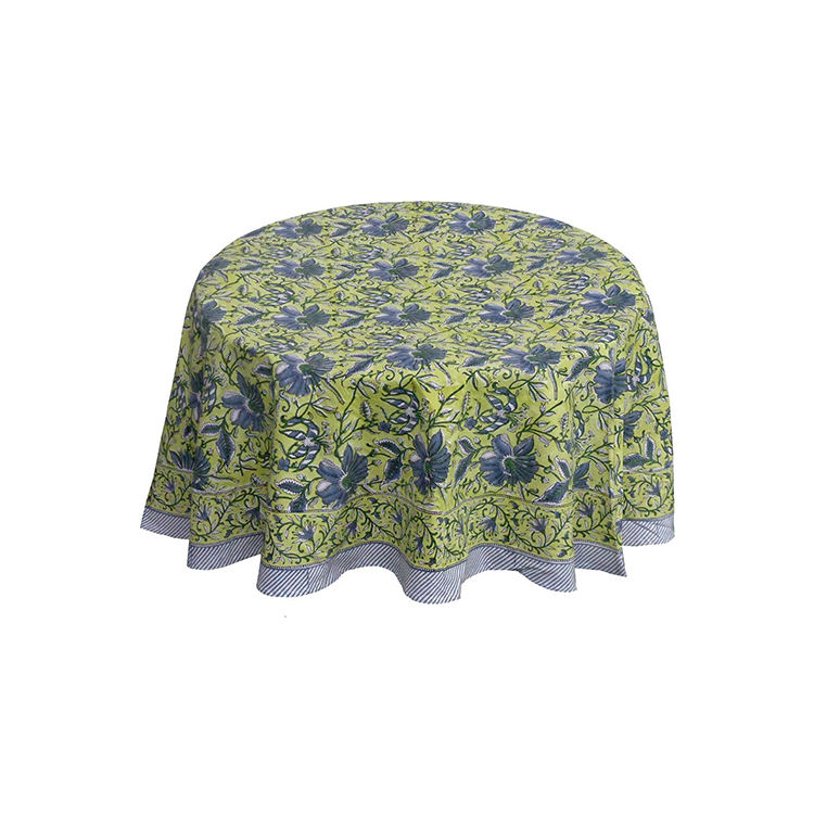 Indian Manufacturer's Handmade 100% Cotton Tablecloth 220 Cms Bulk Supply Hand Block Printed Well Absorbing 20 Sheeting Table