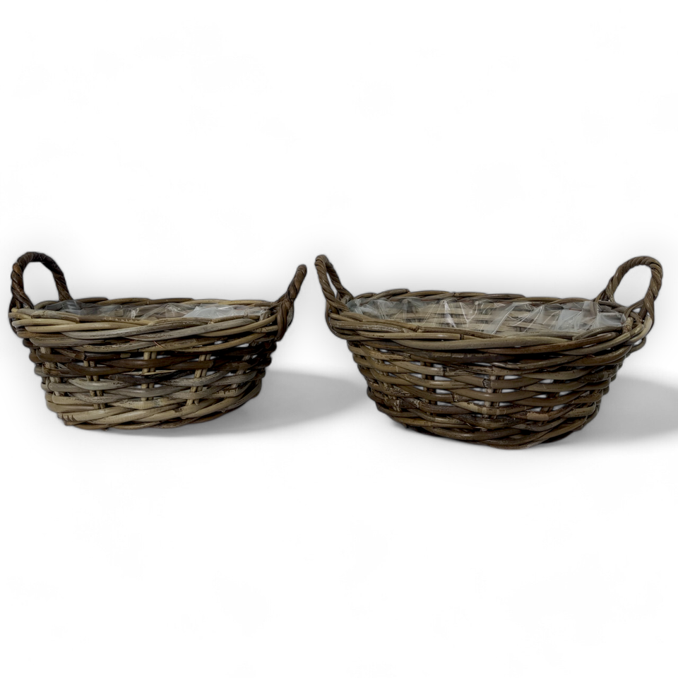 Cheap Traditional Kubu Grey Rattan Fruit Basket with Plastic Liner Functional Natural Storage Baskets for Food