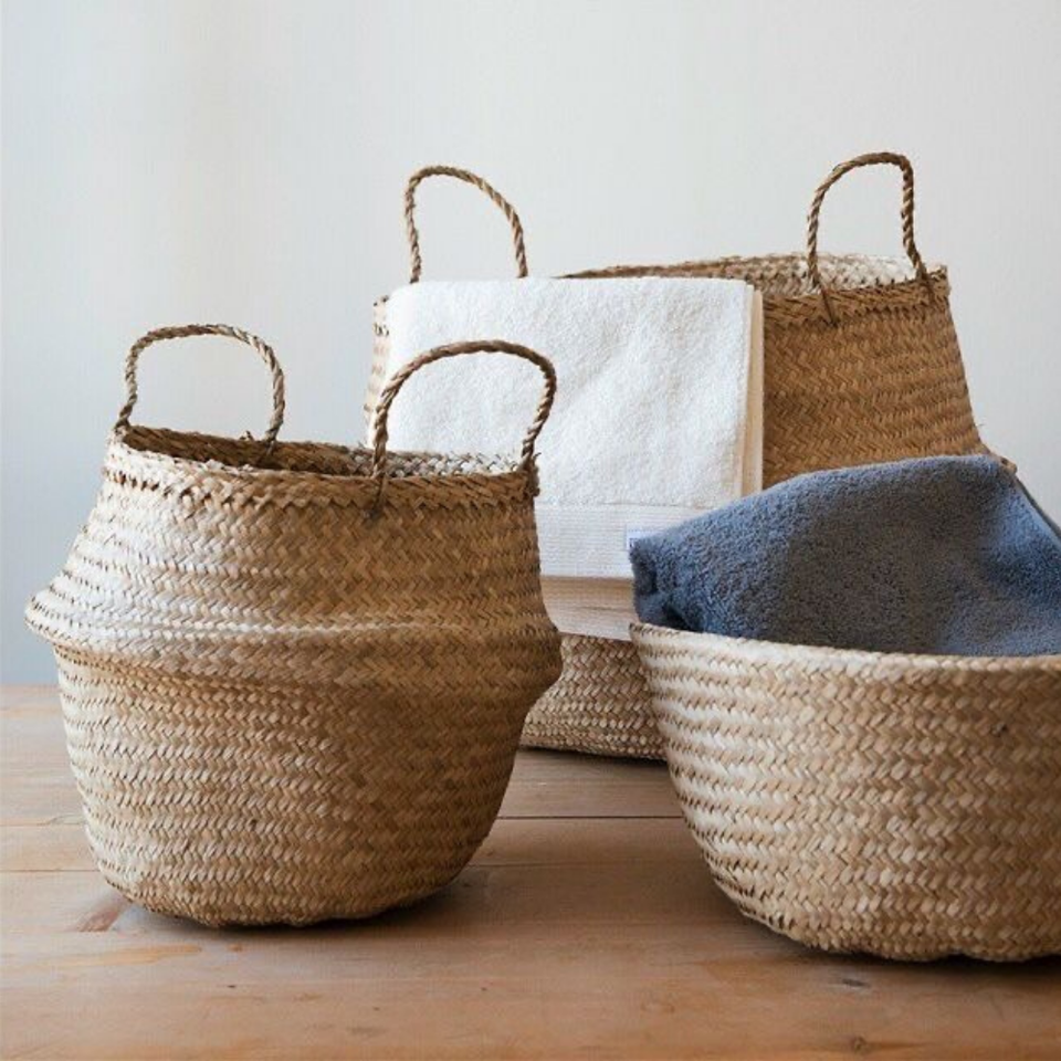 Cheap Wholesale Eco-friendly Handwoven Belly Seagrass Basket Sustainable Natural Wicker Storage Baskets For Clothes Laundry